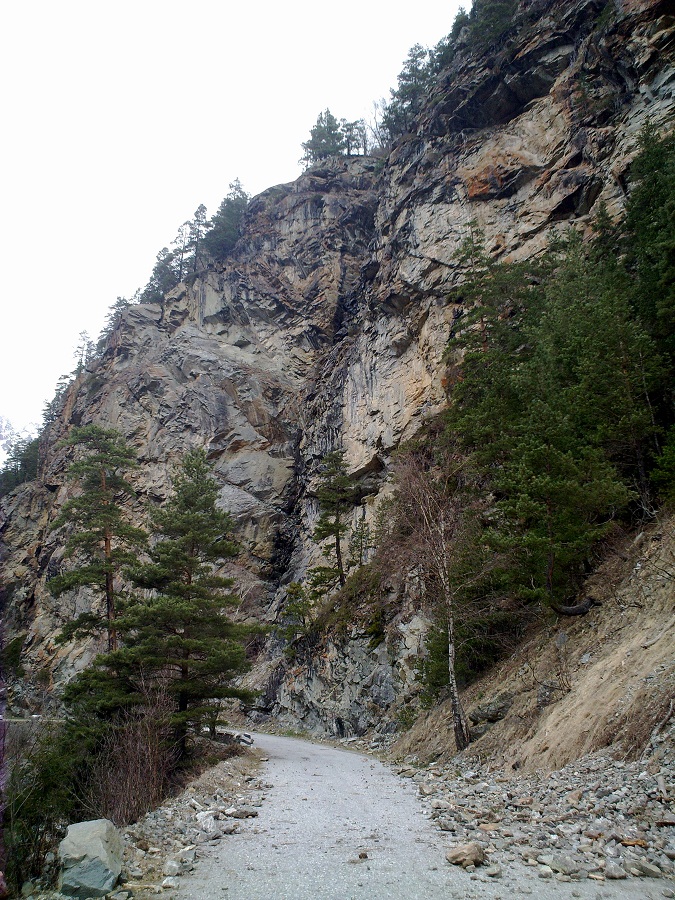 Дальше горы расступаются, уже нет отвесных скал прямо над дорогой…