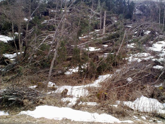 Через 8 км обнаружили, что пройти дальше некак. Все завалено снегом.