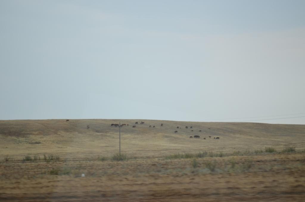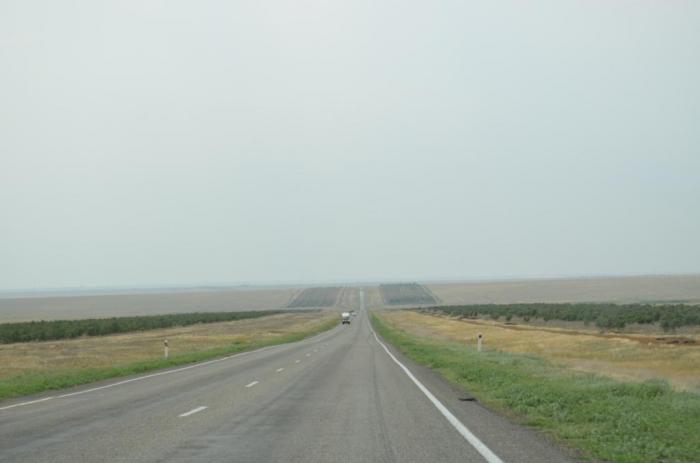 Поехали по Калмыкии. Тоска неописуемая. Во-первых, она вся плоская и ты видишь дорогу на много-много километров вперед. Во вторых, растительности там почти нет и все желтое.