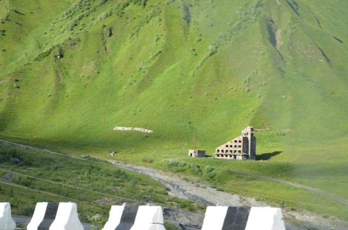 Вообще, Югоосетины очень благодарны России за миротворческие войска. Это здание было раньше роскошным отелем, где отдыхало много народу. Нов таком виде оно стоит уже с 90-х годов, после войны.