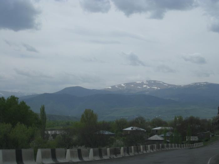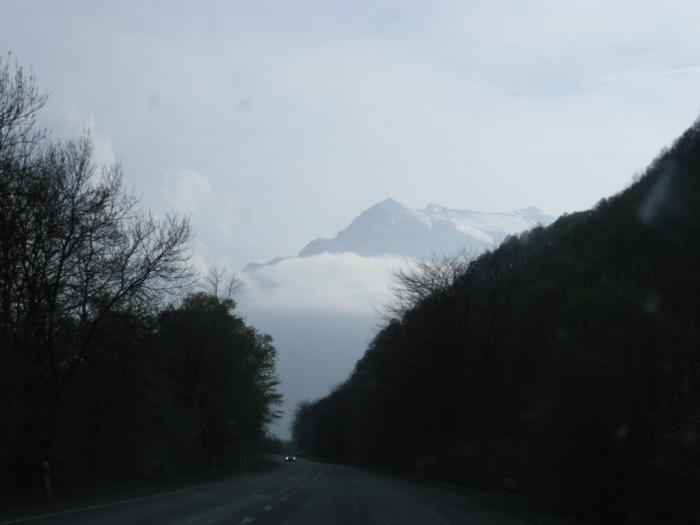 Километров за 100 км. до Грузинской границы справа уже хорошо просматриваются заснеженные Кавказские горы.