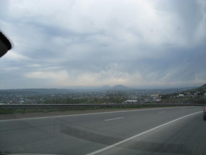 Дорога от Ростова-на-Дону и до самой Российско-Грузинской границы пролегает, как может показаться, по гладкой, как стол, равнине. А оказалось, что Ставропольский край находится на одноименной возвышенности (ок. 600 м. над уровнем моря). Именно здесь, в районе Пятигорска, появляются первые горы на нашем пути. Эти горки всегда напоминали мне песчаные куличи, беспорядочно налепленные каким-то гигантским ребенком.