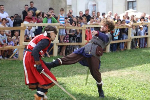 Возрождение правда не касается его усталых стен и почти стершихся башен. Преображается аура внутри Меджибожского замка. Его наполняют люди в средневековых одеждах, они ставят шатры, жгут костры, торгуют и поют песни. Они усиленно убеждают себя, окружающих да и само время, что на дворе прошлое тысячелетие, и даже его середина. Не зря фестиваль *Стародавний Меджибож* чаще называют средневековым шоу, или попросту погружением в средневековье.