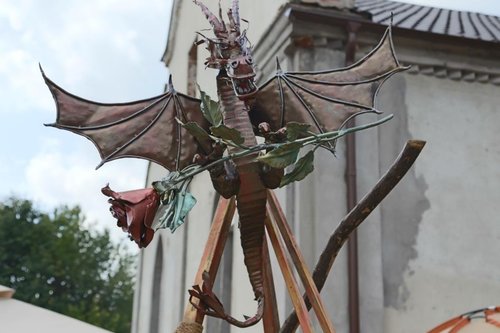 На входе в крепость нас встречает дракон. Кованный, рожденный молотом из огня, но невесомо парящий в воздухе да ещё и с розочкой в лапах.