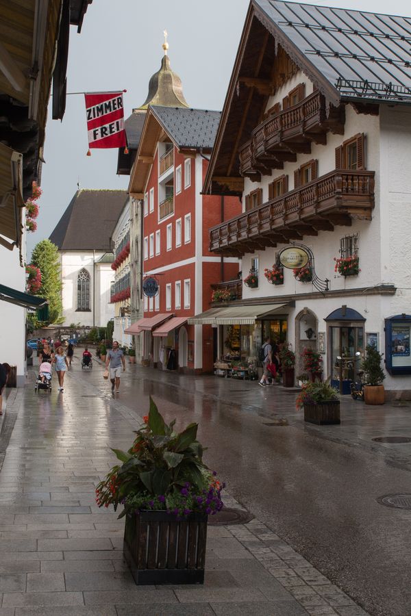 Город стоит на озере ЗАЛЬЦКАММЕРГУТ. Он назван в честь священника, святого Вольфганга. Сейчас здесь проживает около 3000 человек. В старинной готической церкви святого Вольфганга, заложенной еще в 974 году, два алтаря – один готический (более ранний), другой – в стиле барокко (внутри очень красиво). На скамьях есть таблички – это постоянные места целых семей этого города, приходящих в церковь на службы. Городок часто называют пряничным за его «игрушечные» живописные домики, похожие на сказочные декорации. На улицах многие дома расписаны фресками. Можно взять лодку и покататься по озеру(координаты (аренда лодок): 47.739622, 13.434815).