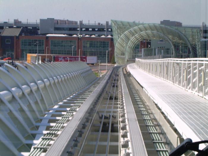 Мы наблюдали за туристами, они покупают билет в терминале и садятся в электричку на подвесной железной дороге. Нам ничего не остается как последовать их примеру. Стоит на человека 1 евро в одну сторону. Электричка идет до Венеции 2 остановки. И самое интересное в ней нет машиниста. Садишься в первый вагон и можешь представить себя на его месте.