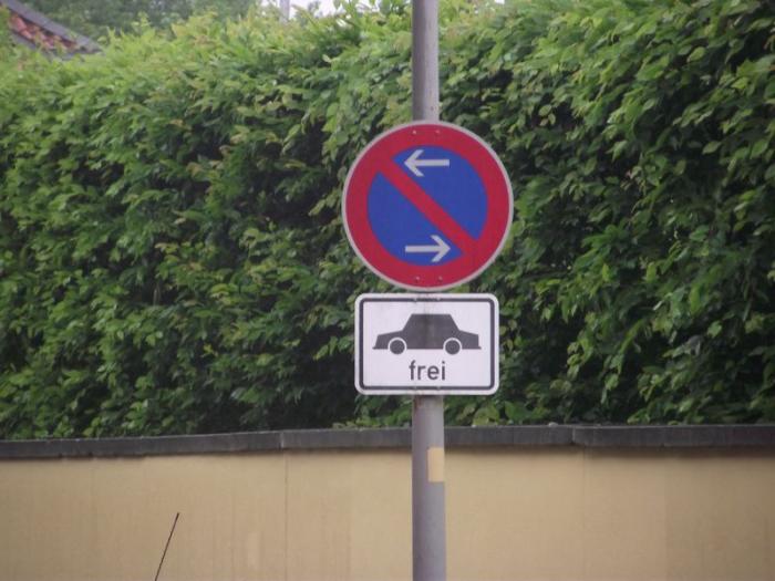Это очень хороший тест для педантичных и законопослушных немцев:)) Крышу снесёт в пять секунд. Как припарковаться СЛЕВА указанным способом? :))
