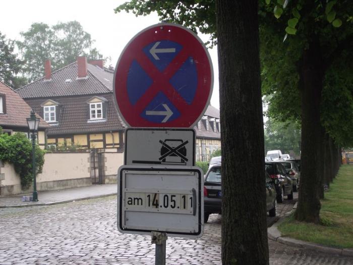 мы живем в Германии и мой муж-немец.Так вот по поводу первого фото: он говорит, что судить только по этому фото трудно, потому как нужно видеть весь перекресток.Но если судитиь только по этому фото, то нельзя остановливаться и парковаться слева и справа ни на дороге, ни на обочине именно в этот день… прямо через перекресток-можно… а во-втором случае-справа остановка запрещена, а слева — Парковка указанным способом, так что antonzaets абсолютно прав...)))а «ам»в переводе с немецкого обозначает «в», т.е. в какой день..))) такая у них грамматика)))