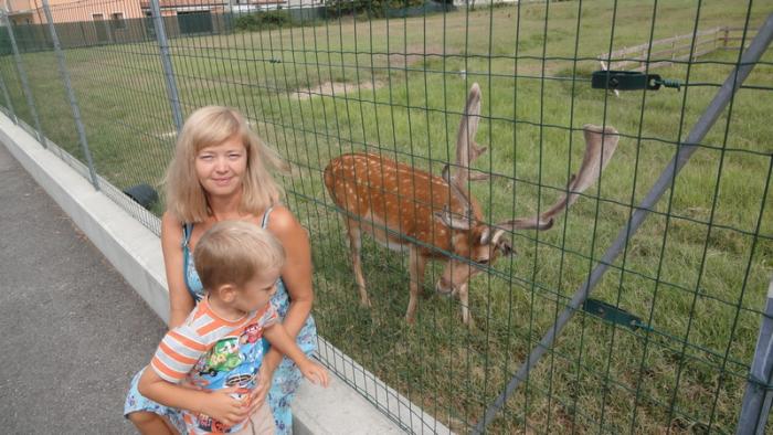 Утром обнаружилось, что наш отель стоит в чудном месте: большой красивый сад с фруктовыми деревьями, фонтанами с живыми золотыми рыбками, клеткой с жар-птицей, живописными дорожками, ротондами и выходом к реке. А через дорогу большой участок леса превращён в вольер с множеством оленей.