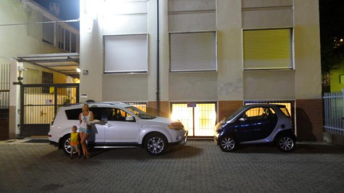 К отелю долго поднимались в гору, температура резко понижалась после 35-градусной дневной приморской жары. Зайдя в отель в открытую дверь, выяснилось, что и в эту ночь заселяться будем с приключениями: на ресепшене пахло псиной, но никого не было. Осмотревшись, заметил, что на стене висит ящик с ключами. Взял несколько ключей от номеров, поднялся и выбрал подходящий номер (71 евро). После заселения на ящик с ключами повесил записку, что такой-то поселился в таком-то номере. Усталые, мы мгновенно уснули.