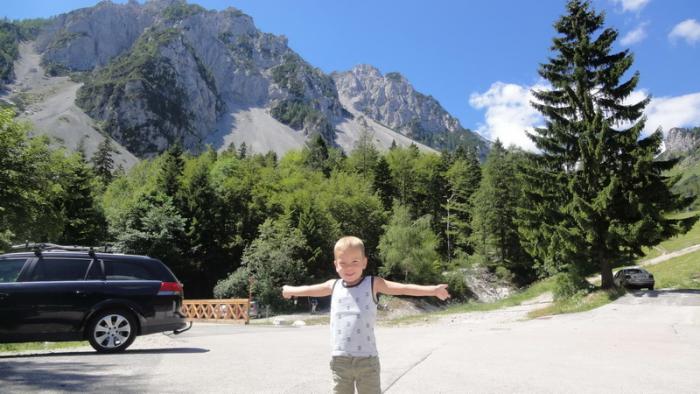 Но не тут то было. Мы не учли, что дорога идёт через Альпы. Кроме того, как позже выяснилось, я задал в навигаторе режим «кратчайший путь», а не « быстрый путь». И через 100 с лишним километров началось. Мы съехали с широкой дороги и поехали по узенькой дороге, ведущей вверх. Было шикарное приключение с восхитительнейшими видами и перевалом на высоте 2200м.