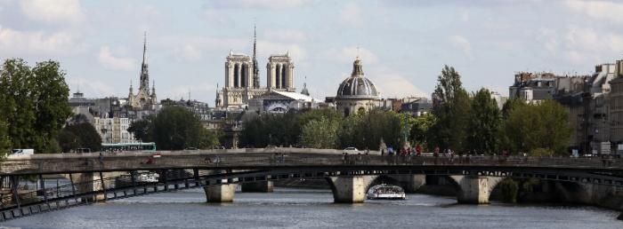 Далее по курсу сад Тюильри. Слопали там по круассану. Везде снуют негры с дешевыми сувенирчиками: за один евро предлагали три брелка с Эйфелевой башней. Надо думать, что у мальчишек сразу загорелись глаза и они готовы были скупить вообще все! За один-то евро! Так, неспешно прогуливаясь, дошли до площади Согласия, перешли Сену, повернули в обратную сторону к острову Сите. Там прошли мимо Дворца правосудия и вышли к Нотр Дам. Пока гуляли, совершенно забыли о времени. А очнувшись поняли, что в Латинский квартал нам уже не успеть и метнулись в сторону метро, все равно какого – оно там повсюду. Оказались на станции “Hotel de Ville” (первая линия). Тут начались первые заморочки с билетами (я пребывала в святой уверенности, что они действительны целый день): лампочка на турникете загоралась красным, но сам турникет проворачивался. Мы посомневались немного, но прошли. Наша цель – станция “Ecole Militaire” на 8-ой линии, пересадка на “Concorde”. С этой станции почти сразу же попадаешь на Марсово поле. И даже с этой точки Эйфелева башня еще не впечатляет. Восторг приходит, когда приближаешься к ней вплотную, и находишься под ее сводами. Вот тут-то и тебя и накрывает осознание того, что ты в Париже!
