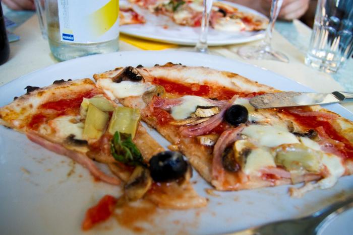 Пока нам приносили пиццу Каприччозу, начало темнеть. К пустующей кафешке стало подходить большое множество итальянцев, желающих тоже отведать вкусный ужин. Уже через несколько минут этот ресторанчик был забит до отказа. Люди стояли у входа в ожидании свободных мест. А это ведь хороший показатель для вкусного и качественного места!