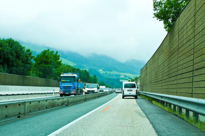 А на горизонте появился первый пункт за нашу поездку для оплаты дороги. На табло было написано, что легковые машины должны заплатить 8€. Горы были уже совсем близко, но облака не позволяли нам их разглядеть. Пошли туннели. Один, второй, третий… Длинные, короткие и очень длинные.