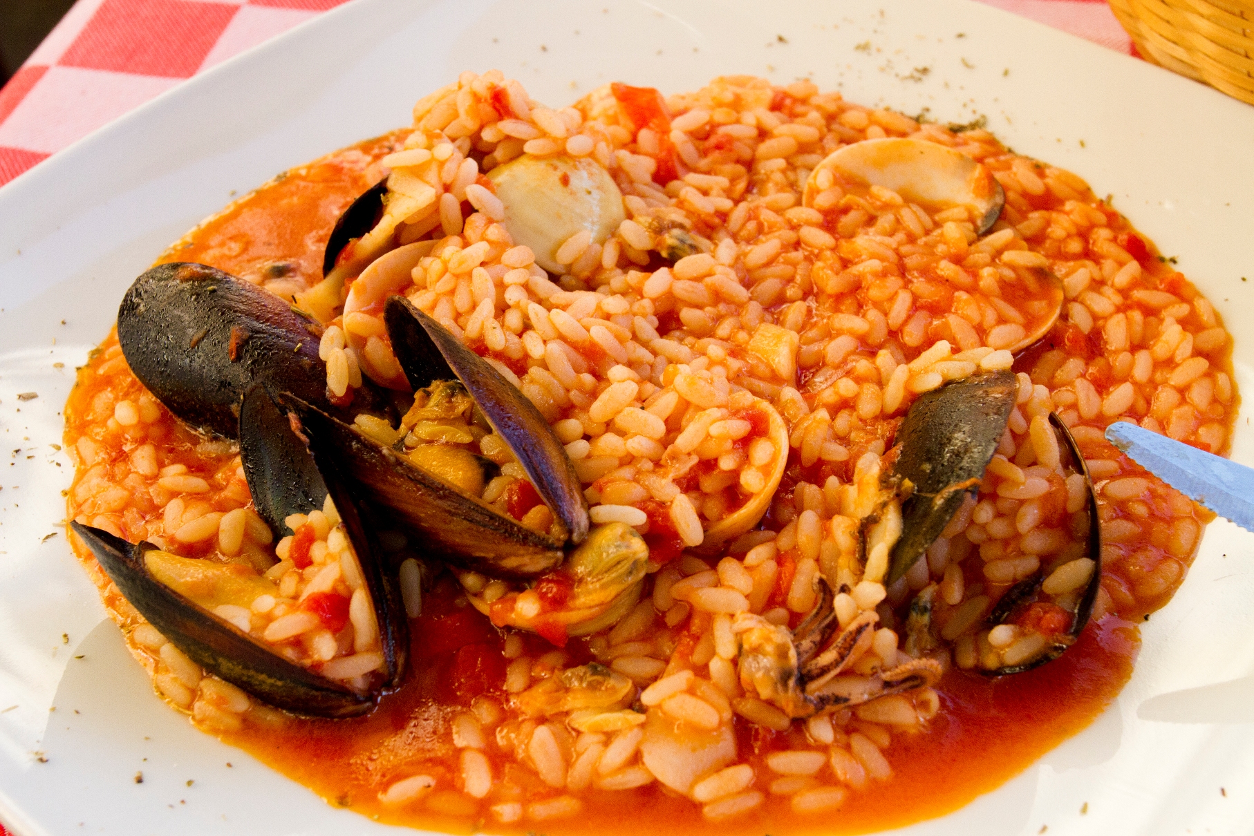 Впереди нас ждало душистое, свежее, превосходное итальянское ризотто с морскими обитателями. (Морепродуктами — язык не поворачивается назвать)