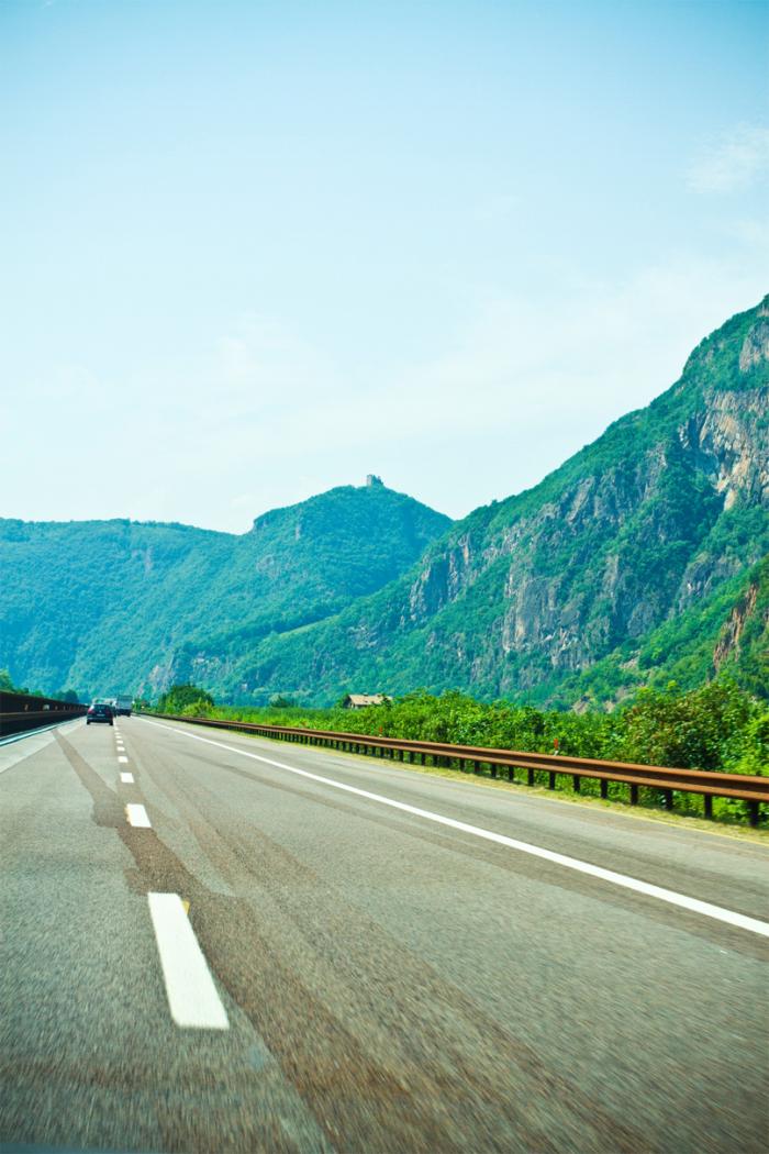 Тучи расступились, температура за окном стала стремительно расти. Вспоминались слова одного из автопутешественников, что в Германии облака ходят строем. Ну, мы могли так сказать и про Австрию. Невозможно было поверить своим глазам, но за итальянской границей светило теплое солнце. На душе сразу потеплело. Хотелось от счастья… подпевать Челентано под песню Soli. Это Италия! Такая любимая и долгожданная, неизведанная и красивая. Хотелось этот прекрасный момент просто поставить на паузу, раствориться в нем. Мы этого ждали полгода, а может и всю жизнь. Зиму, весну и начало лета представляли, как будем ехать по Италии — и вот мы едем по ней. Это реальность, а смотришь в окно и не веришь своим глазам.