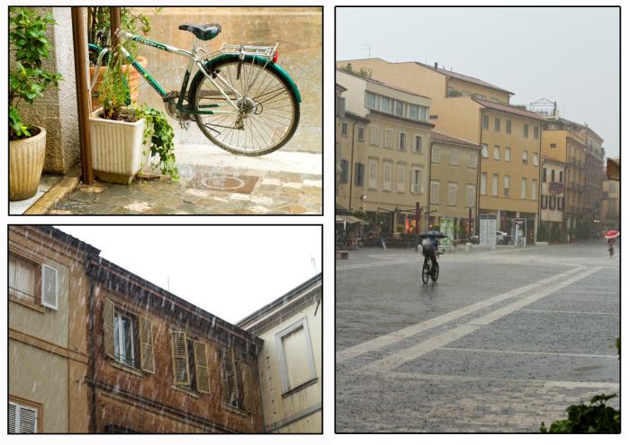 Пообедать удалось, и весьма неплохо и недорого, практически у моря, в одной из многочисленных вдоль моря кафешек. В среднем пицца в таких заведениях стоит 5-10 евро, а паста, — 7-12 евро. Получив большую порцию вкусной пасты, мы отправились на пляж. Но тучка, которая висела вчера над Сан-Марино, решила сегодня обрушиться на Римини. Пошел дождь, но он не испортил наших планов. Мы спрятались от него под зонтиком и лежали на шезлонгах, а потом грелись в воде. Так что покупаться смогли, вот с загаром сложнее, но небольшие лучи все-таки пробивались сквозь пелену темных нахмурившихся туч.