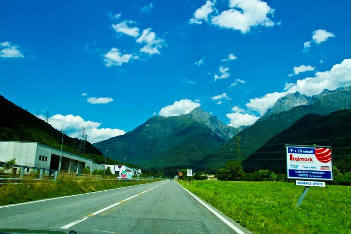 Мы поехали и держали путь на север Италии, сначала в сторону Милана, а потом свернули на города Брешиа и Бормио. Мы ехали в Альпы. Сначала – продолжительное время по автостраде, а потом по дорогам местного значения, которые называются Strada Statale, а на карте обозначаются под цифрами, например SS38.