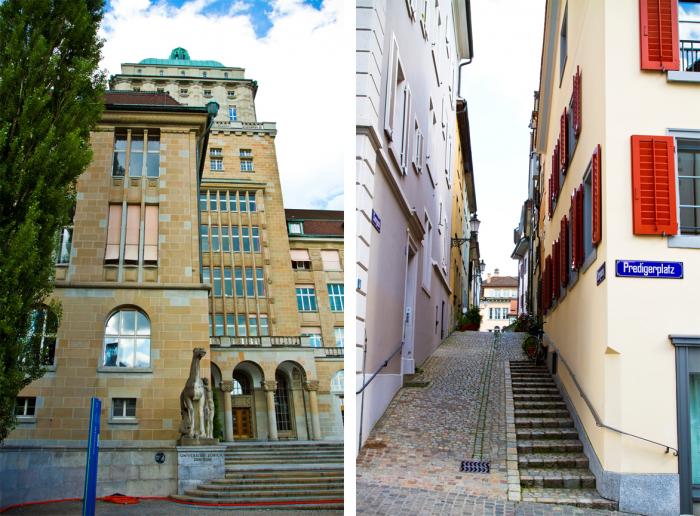 Город Цюрих, в прошлом году занял второе место в мире по комфорту жизни, а в 2012 стал самым дорогим городом мира. Мы это заметили! Цены космические на всё. На любую ерунду. Но по людям видно, что их вполне устраивает такой уровень цен, потому что вполне устраивает их высокий уровень дохода. Конец рабочего дня люди проводят в многочисленных кафешках, курят за чашкой кофе и газетой. Обычный распорядок дня простого бизнесмена. Итальянской легкости тут уже совершенно не было. Всё доброжелательно, но без улыбок.