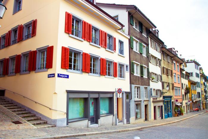 Движение вполне спокойное, но иногда из-за горного поворота вылетают на большой скорости машины прямо в лоб. Странно было это видеть в стране, где смертность на дорогах минимальна. До Цюриха мы ехали недолго. Да и вообще всю страну объехать можно за один день. Выбрали бизнес-город из-за удобства в маршруте. Но он оказался не самым лучшим вариантом. Надо было нам продолжать соединение с природой в какой-нибудь швейцарской деревне.