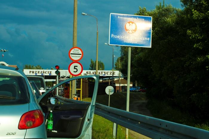 К двум часам, точно как рассчитывал навигатор, мы приблизились к Варшавскому Мосту. Приблизились потому, что до него оставалось 1,5 км очереди из машин. Люди предполагали простоять часов 5. Нас эта цифра испугала и совершенно не хотелось так долго прощаться с Польшей. Мы рванули в Домачево. Дорога до соседнего погранперехода проходит параллельно границе и занимает около 40 минут.