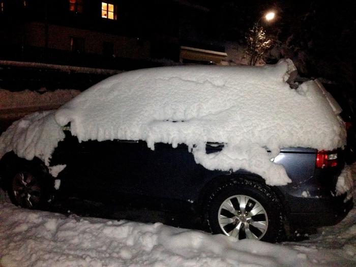 Вечером собирали чемоданы… С сыном отскребали машину от 30 см снега… Али (хотельер)) тоже нам в этом помогал…