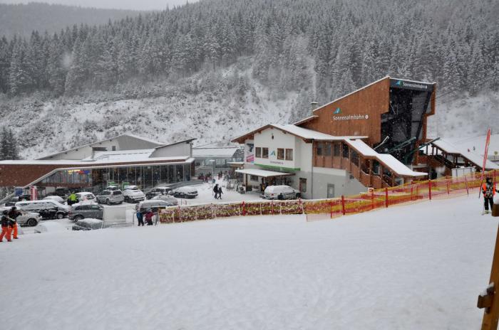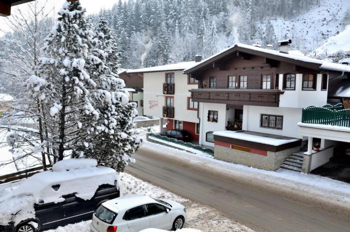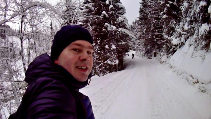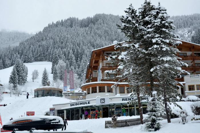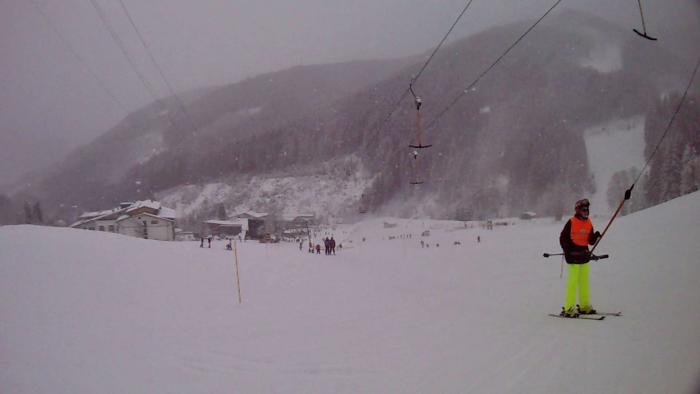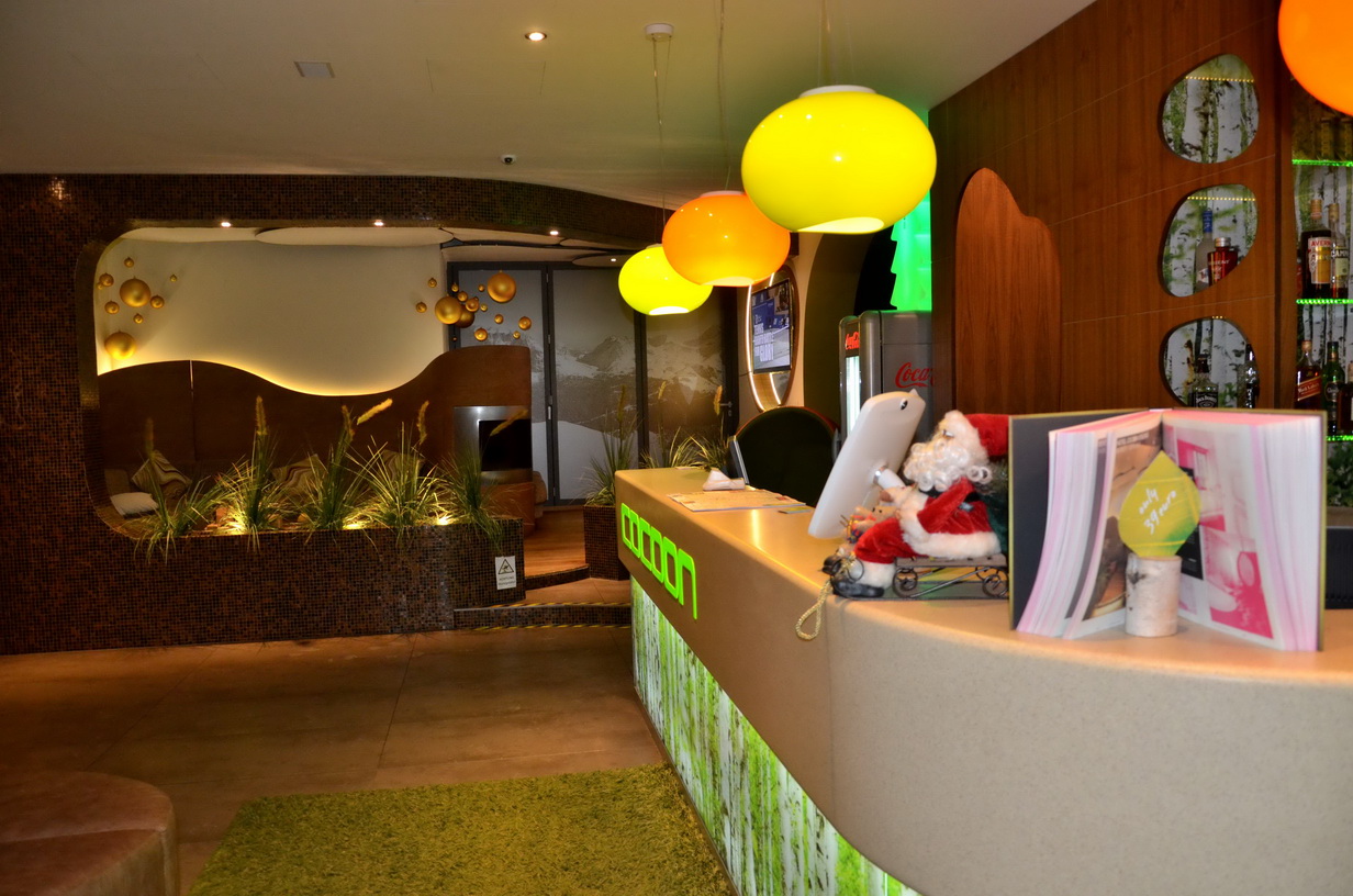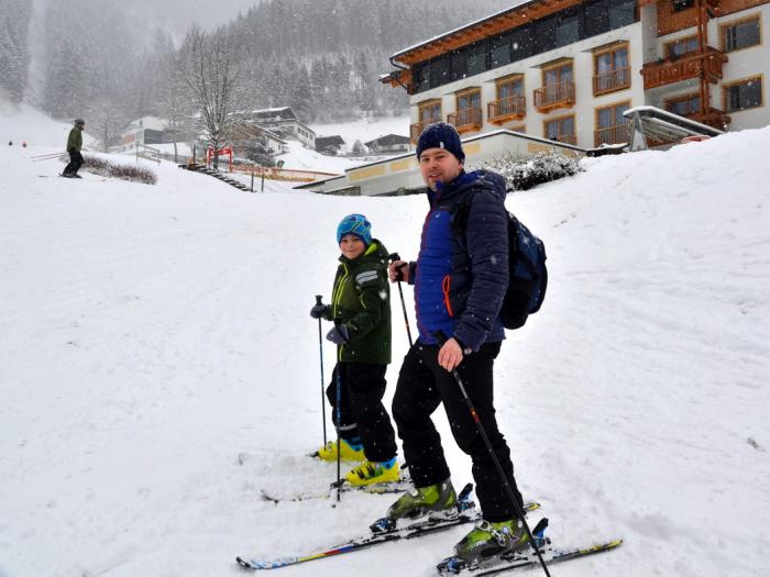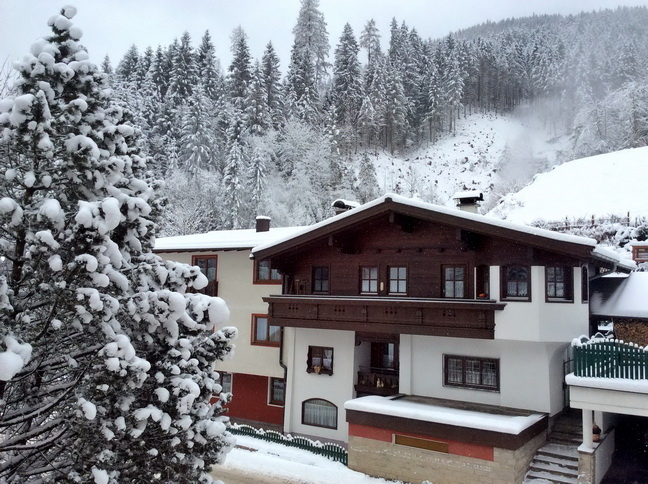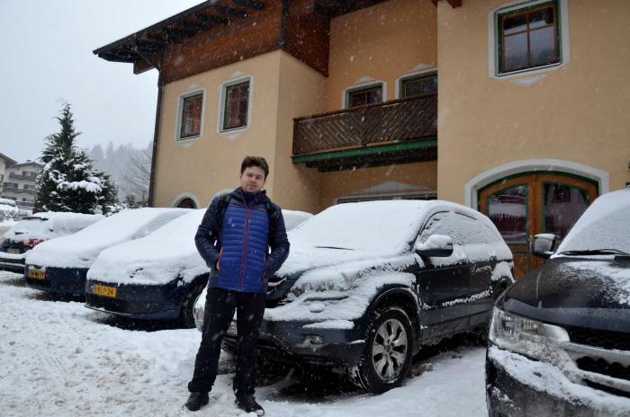 Приехали мы на место около 14 ч. Заселение было с 15 ч. Прикольно, что ресепшена у них там как такового не было и наружные двери были закрыты… И тишина… Потом появилась семья немцев, которая впустила меня внутрь. Комнатка персонала была закрыта. Около 15 ч я начал звонить по оставленным на доске информации телефонам работников этого отеля. Никто трубку не брал. Срабатывал автоответчик. Я позвонил в Booking.com, они тоже не дозвонились. На доске информации также был написан пароль Ви-фи, поэтому я стал звонить через интернет и оставлять сообщение на автоответчик, потом написал письмо на e-mail хозяевам отеля. Я уж и не надеялся, но вскоре мне пришел ответ, что нужно еще немного подождать и скоро придет сотрудник отеля, который все сделает и будет всем счастья… В общем они извинялись за неудобства… Около 16ч появился сотрудник (в последствии выяснилось — хороший парень по имени Али), который шел довольный, с горными лыжами… Собственно, что тут скажешь, разве кто-нибудь нормальный смог бы устоять от покатушек после такого шикарного снегопада… )))).