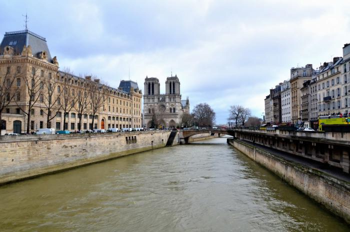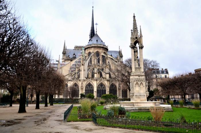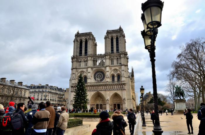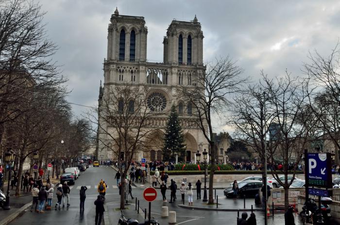 Утром, после скромного французского завтрака в отеле, мы отправились гулять по Парижу. Благо погода заметно улучшилась, периодически выглядывало солнце. Мы поймали такси до Нотр-Дама (всего 7 Евро).