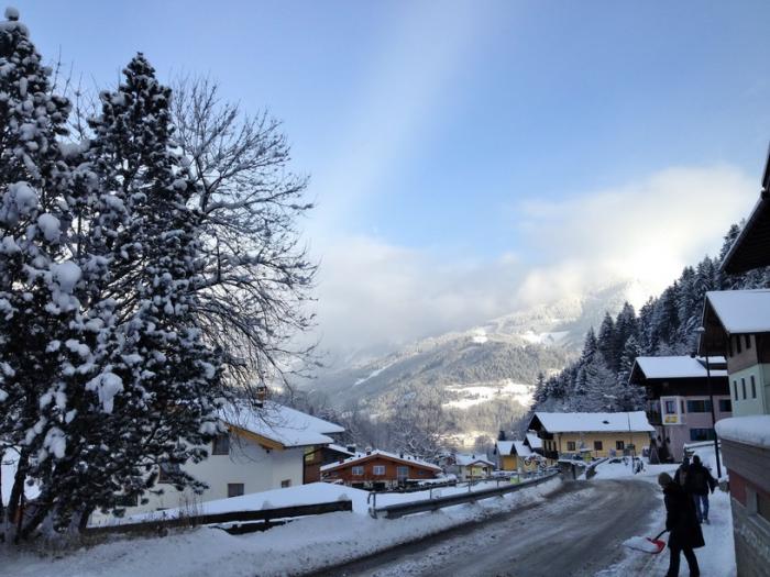 Вечером около 20 часов сходили в наш)) ресторан! (Чтобы встречать НГ в ресторане — нужно было бронировать столик хотя бы за 2 недели). Вкусно поужинали, выпили шампанского и пива, поели улиток, разного мяса и тд. После чего (около 21.30) отправились праздновать Московский и Европейский НГ в свои апартаменты в семейном кругу. С балкона наблюдали за фейерверками. На улицах народу было немного (в основном народ сидел либо в отеле, либо в ресторанах). Это был первый Новый Год проведенный в Европе, да еще и в заснеженных Альпах – поэтому ощущение сказки всех нас не покидало…))).