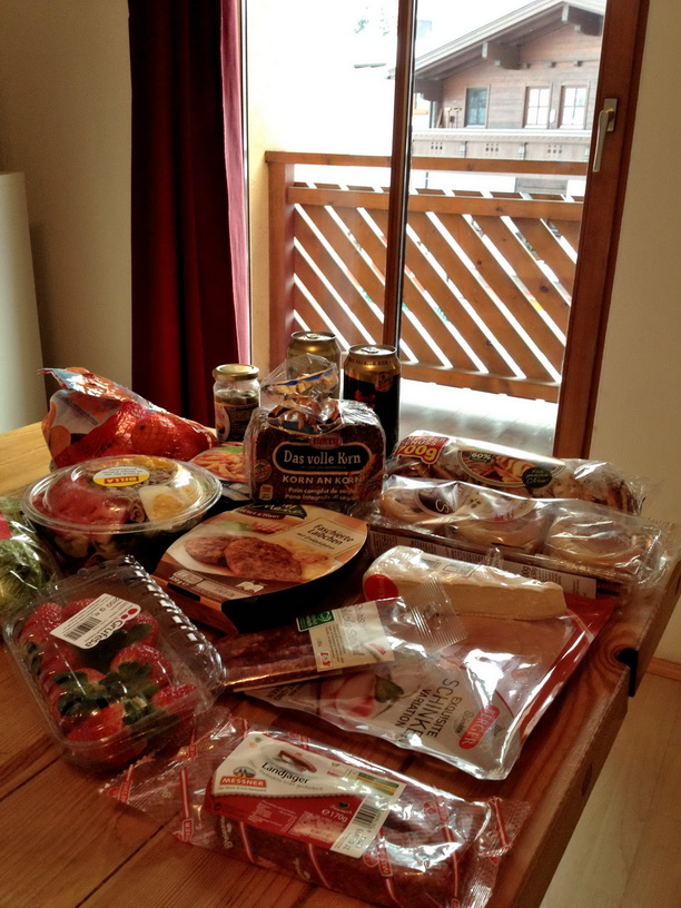 После весёлых и радостных лыжных катаний мы заскочили в магазин BILLA (расположен в центре городка), затоварились мандаринами, сырами, колбасами и тортиками для празднования Нового Года. Шампанское (МОЁТ) было куплено заранее в Париже…