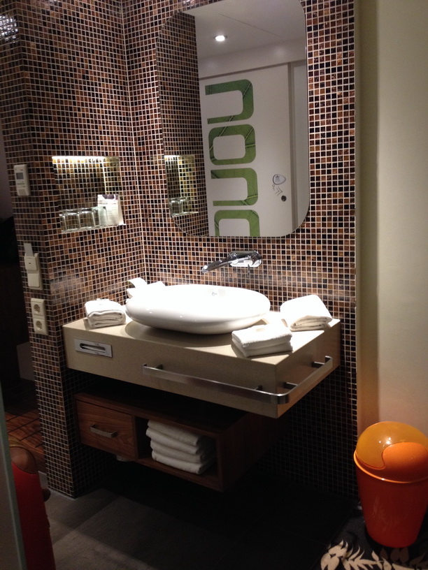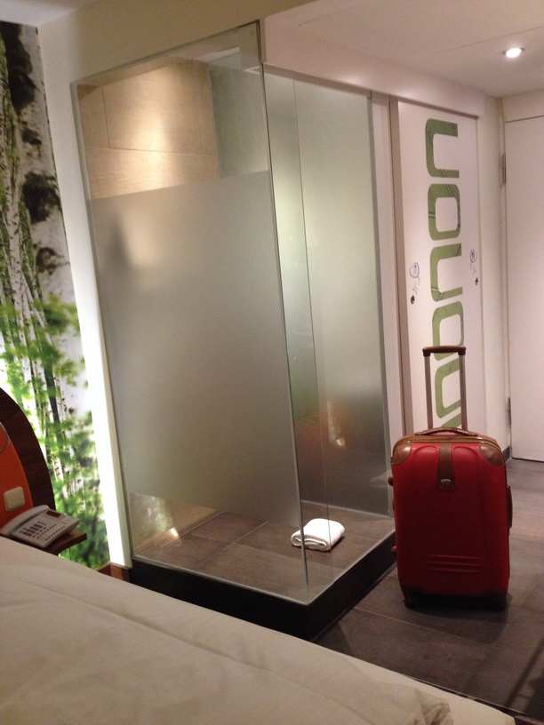 Заселились без проблем. (3*) – симпатичный такой отель в центре, оформлен в современном (несколько молодежном) стиле… У нас был 2-х комнатный номер для 4 персон с двуспальной кроватью и еще двухъярусной кроватью. Единственное неудобство (для семей со взрослыми детьми или компании друзей) – в номере душевая кабина из почти прозрачного стекла))), расположена рядом с двухспальной кроватью.