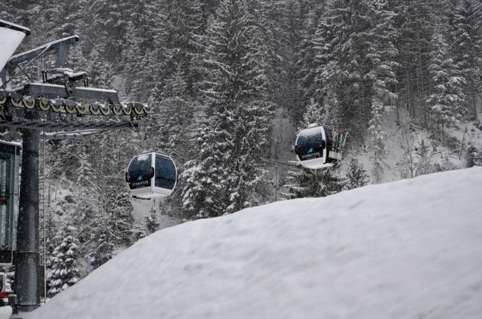 Поднялись на фуникулере на высоту 2000 м – к сожалению, из-за продолжающегося снегопада и низкой облачности нам в этот раз не удалось увидеть всю красоту горных вершин этих мест.