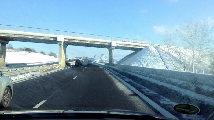 В восточной части Франции было много снега (ночью был снегопад) – за все эти дни снег шел впервые… Дорожные службы работали хорошо и оперативно. Дороги были очищены от снега, обработаны реагентами. Многие французы осторожно катились на летней резине или пережидали на крупных заправочных комплексах (на них скопилось очень много французских машин), толпились, скупая незамерзающую жидкость.