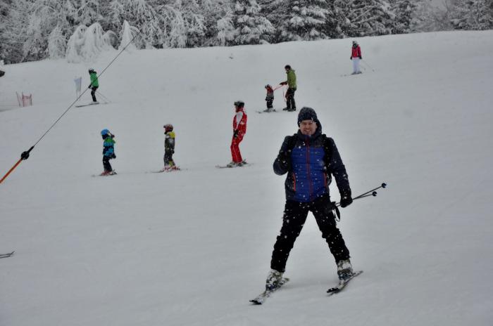 Поучил немного сына катанию на горных лыжах…