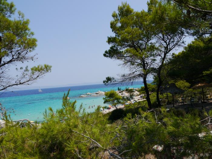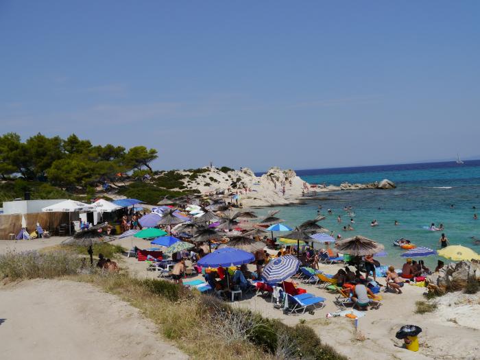 Как видно, отдыхающих не очень много, пляж и Эгейское море очень чистые.
