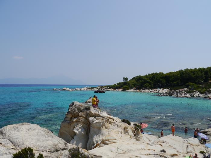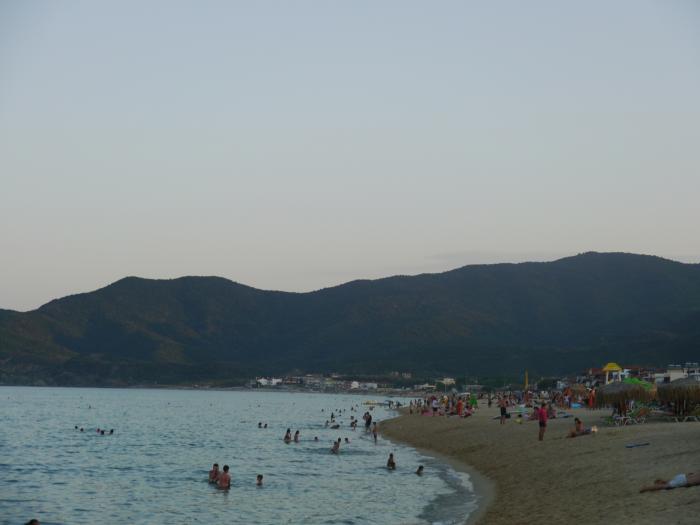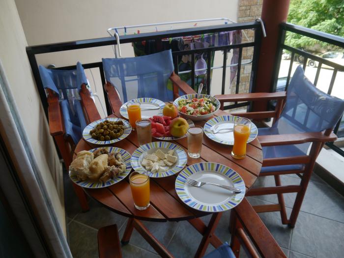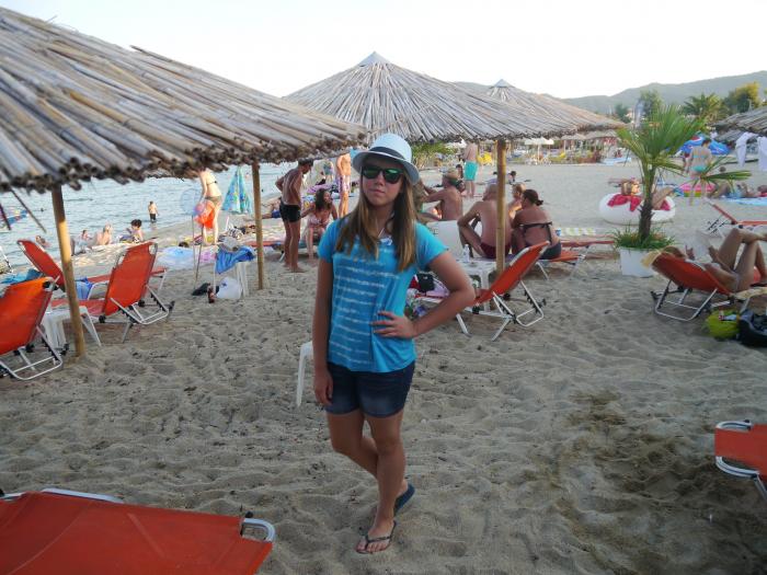 Немного о целях посещения Греции. Вначале планировалось провести эти шесть дней активно: посетить Метеоры, обязательный заезд в Салоники (Белая башня и т.д), возможно даже купить жене очередную шубу в Кастории. Но проехав впервые в жизни такое большое расстояние мы устали и на семейном совете решили устроить себе полный «релакс» с небольшими ознакомительными поездками. Распорядок дня был примерно такой: я просыпался раньше всех, пробегал примерно два километра по набережной, купался в море, после этого покупал вкусной и свежей выпечки, овощи и фрукты. Затем мы завтракали и шли на море. Во второй половине дня возвращались в номер, спали, а вечером гуляли по набережной и выбирали один из многочисленных ресторанчиков для ужина. Балдёж!