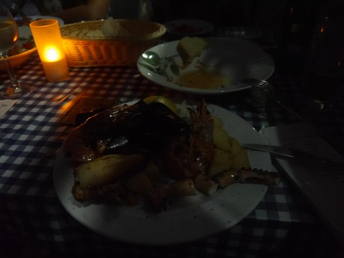 В одном из рыбных ресторанов был с удовольствием съеден микс из морепродуктов. Ужин на троих с пивом обошёлся в 60 евро. Это намного дешевле чем у нас в Туле. Причём это был самый дорогой ресторан. Обычно ужин обходился нам в 35 евро, с полным набором блюд, вином и ракией. Что я точно не понял, так это узо. Как его пить, с чем, непонятно. Огромное количество аниса в напитке порождало сходство с ментолом, поэтому ракию я всегда просил «No anis».