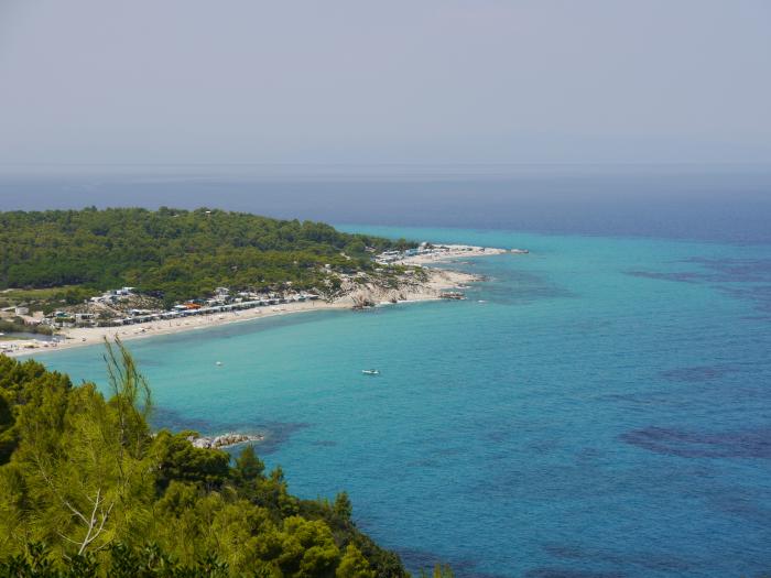 Дороги здесь отличные, я всё ждал пунктов оплаты, а их так и не оказалось. Вскоре, проехав Салоники, мы оказались на полуострове Халкидики. Дорога стала узкой, пересекала много населённых пунктов, и поэтому средняя скорость движения упала. А последние примерно 50 километров изобиловали такими красочными серпантинами, что захватывало дух!