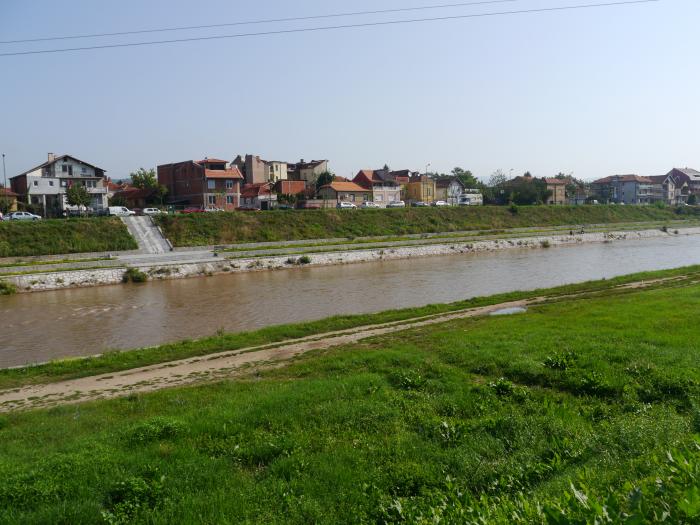 Река Нишава. Вода в ней мутная, коричневого цвета.