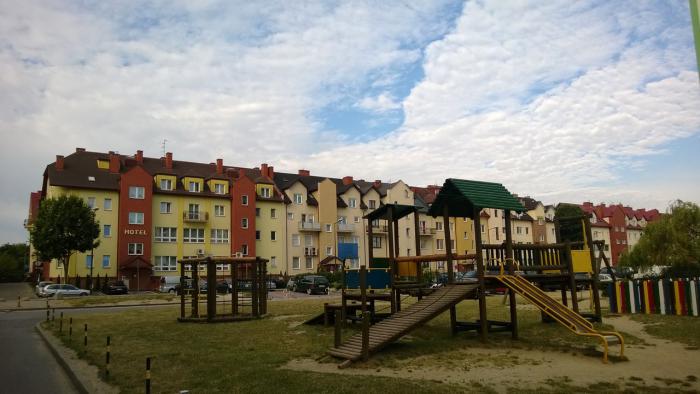 Так как длинная дорога за эти два дня вкупе с недостатком опыта длительных переездов давали о себе знать, я решил, что заночуем в любой ближайшей гостинице/хостеле/кемпинге чего бы это не стоило. Каковым же было удивление, когда практически в паре километров мы обнаружили окраину крупного города Ленчна. Ближайшим отелем оказался
