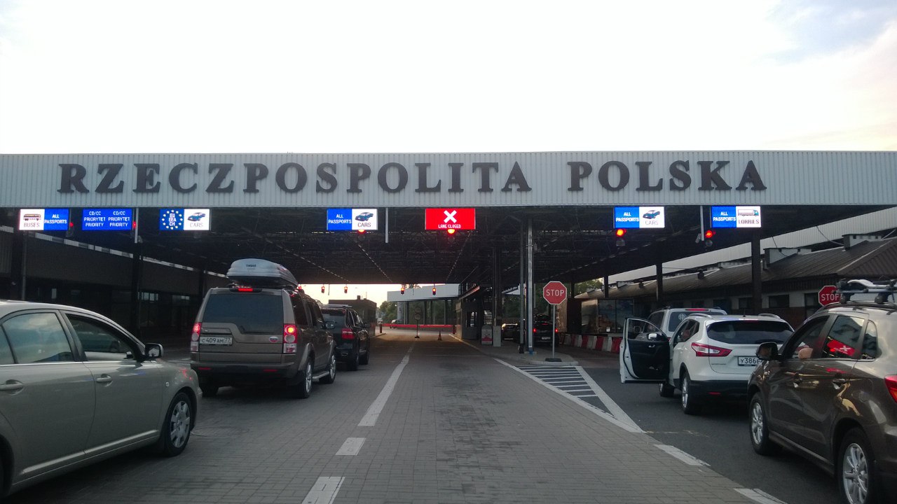 Белорусскую сторону прошли быстро, от силы минут десять в общей сложности. Визуальный осмотр багажника, розовые штампики в паспортах и мы на польской границе. Там машин уже больше, а дело еле движется. Хотя делая скидку на жару, сиеста у польских погранцов вполне оправдана. Но вот очередь дошла до нашего Лансера. И что бы вы могли подумать? Именно нашу машину, единственную из всех, заставили проходить тотальный досмотр. Пришлось заезжать в специальный бокс, похожий на бокс мойки или автосервиса, с небольшой эстакадой и ямой. Три бравых хлопца перетормошили содержимое багажника, салона, выдернули коврики и прочую требуху. И кстати, во время досмотра не стоит отвечать на вопросы пограничником про наличие в машине молока, мяса или яблок фразами Виктора Багрова из «Брата-2», мол, «болеете»?))) Проверено) Справедливости ради сами офицеры помогли погрузить весь наш багаж обратно, и наконец-таки, дали нам зелёный свет.