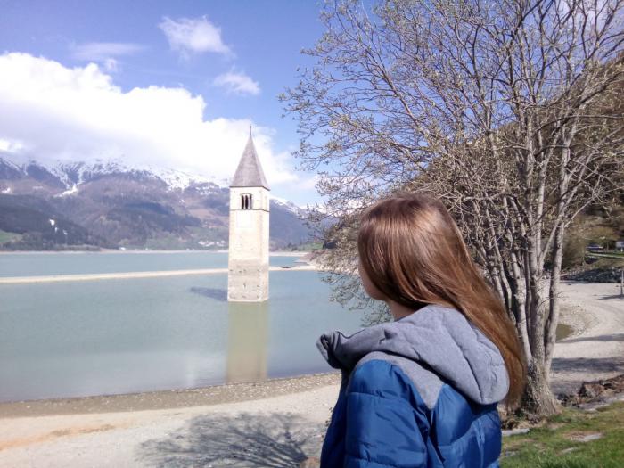 По привычке проснулись рано и в 8,00 выехали в сторону Италии, по пути остановились на озере Agide-Etsch, которое соединяется с Reschensee. Утром туристов там практически нет, но к обеду уже многолюдно.