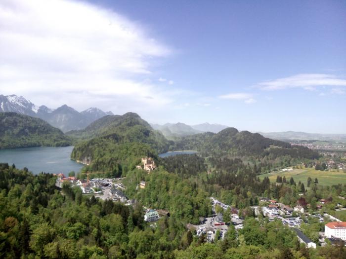 На сегодня у нас в планах замки Нойншванштайн и Хоэншвангау. В 8,30 мы выехали в сторону Германии, по пути у нас подвесной мост Highline 197, на который мы к счастью не поднимались, поскольку тогда не осталось бы сил на подъём к замкам.