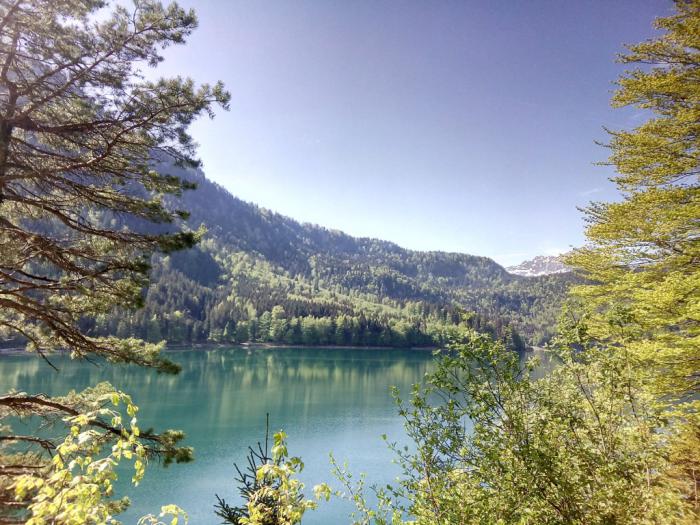 Нижний замок обошли быстро, билеты на экскурсии не брали, т.к. не хотели быть привязанными по времени, да и не особо мы любим смотреть на дворцовые интерьеры и картины. Нас больше интересует природа, поэтому обошли парк вокруг замка, спустились к озеру Alpsee – кристальная вода, великолепный вид!