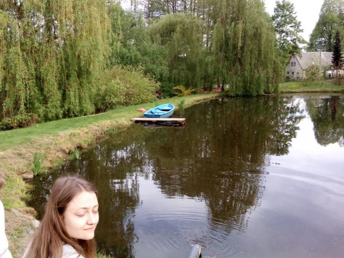 Покупки заняли минут 40, за это время еще прошлись по центру города (если это можно назвать центром). Городок небольшой, все «достопримечательности» (а их нет) в центре вокруг площади с фонтанчиком. Город советских времен, все в нем из 1970-х! Делать там абсолютно нечего, поэтому мы купили Бехеровки, пива, заправились дешевым чешским бензином и поехали в отель Pension u Bernardyna в г.Stokov. Добрались в 16,30. Возле отеля озеро, хозяйка разговаривает на русском языке. Здесь почувствовали себя ближе к дому, да и природа напоминает родные края.