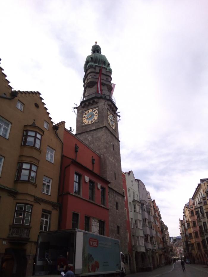 Наше знакомство с Австрией не закончено. В 7,30 выезжаем в г. Инсбрук, в котором оказываемся через час. Город не громоздкий, но очень уютный. Правда, когда мы приехали — 1 мая-это был праздник и магазины открывались позже, но оно и к лучшему, ведь можно было не торопясь рассмотреть все красоты и туристы не мешали. Припарковались почти в центре, свободных мест было предостаточно.
