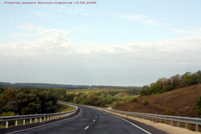 Сразу после переправы начинается прекрасный новый асфальт, но радость длится не долго, километров 30. Вообще Саратовская область по качеству дорог сильно проигрывает многим регионам.