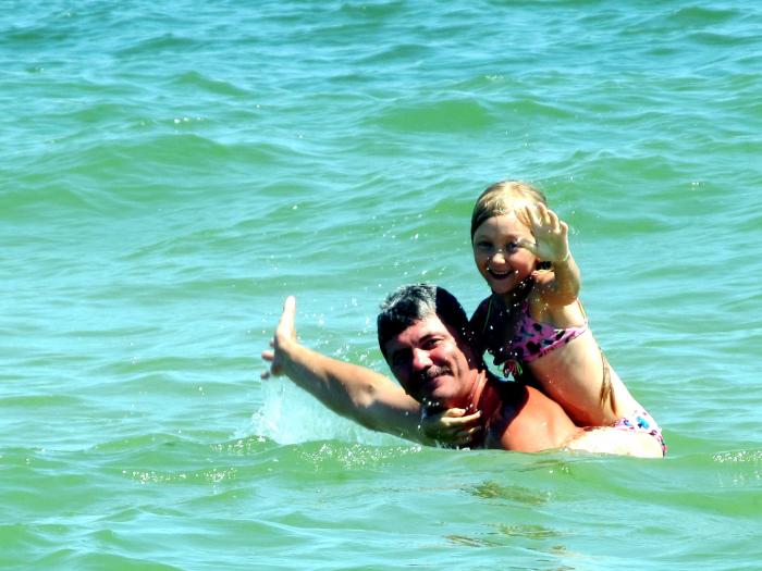 Географически Затока весьма интересное место, она расположена в точке впадения Днеста в Черное море. Пляжи в Затоке песчаные и удобные для купания детей. Море не предсказуемо, за 10 дней которых мы провели в Затоке оно менялось каждый день. Сила прибоя, высота волны, направление течения, прозрачность воды эти факторы постоянно в динамике, но это не мешало ежедневно получать удовольствие от купания и учится плавать моей внучке.