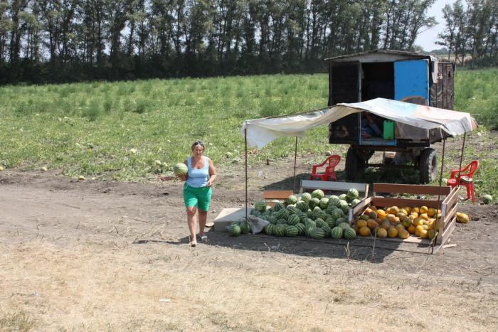 К половине третьего возле станицы Журавская мы свернули с М-4 на Тихорецк и ушли в степи. Я уже писал, что предпочитаю пустой багажник, но вернуться домой из Краснодарского края без арбузов это преступление перед родственниками. Казачки не жадничали, продавали арбузы и дыни по 5 руб. за кило.