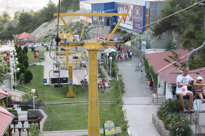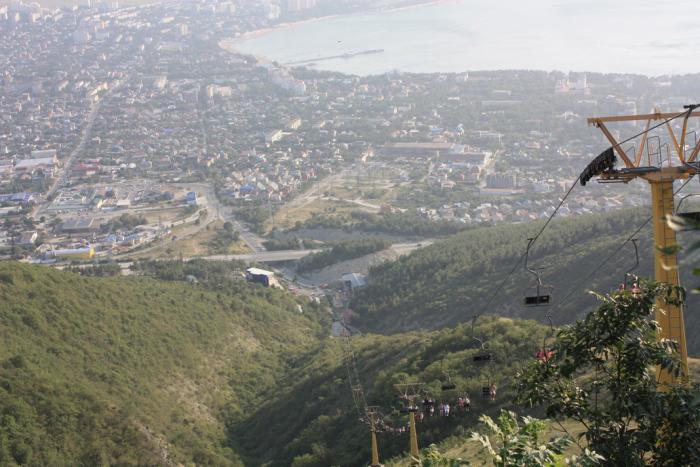 Панараму Гелинджика еще интереснее смотреть с вершины гор окаймляющих бухту. Забраться на самый верх проще всего при помощи канатных дорог, которых в Геленджике две. Первая находится в Сафари-парке, это такой стилизованный зоопарк по цене 550 рублей за вход. Вторая в Центре развлечений Олимп по 400 рублей. Длинна у канатных дорог разная, но высота на которую Вас поднимут примерно одинаковая.